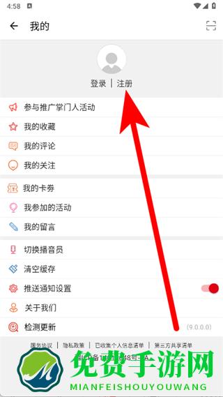 3、在我的页面,点击注册。