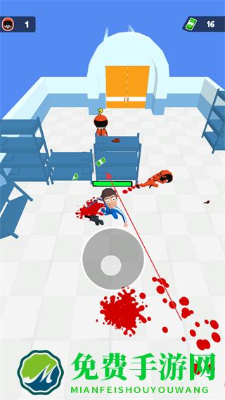 2、接近敌人后,自动或点击攻击按钮对敌人进行攻击,击败敌人可获得金钱如屏幕上方显示的$16。