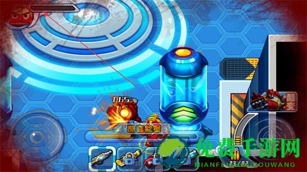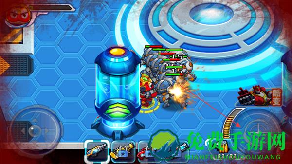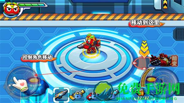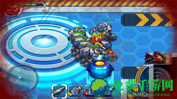 2、当遇到敌方机器人靠近时,点击攻击按钮,操控角色使用武器射击敌人。