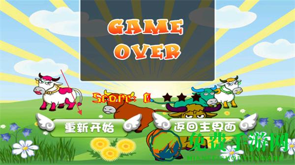 4、若未能成功套中一定数量的牛,游戏结束,点击重新开始再次挑战。