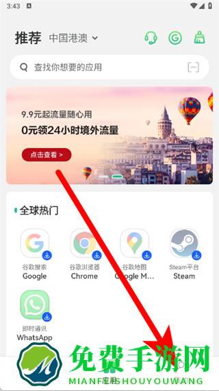 按“出行”“美食”“社交”等分类汇集全球热门本地应用,含导航、打车、支付等高频工具,提供安全下载渠道,避免境外找应用难、下到不安全软件的问题。