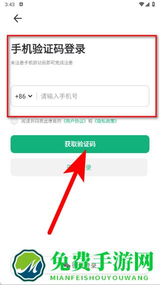 3、在手机验证码登录页面,输入手机号后,点击获取验证码。