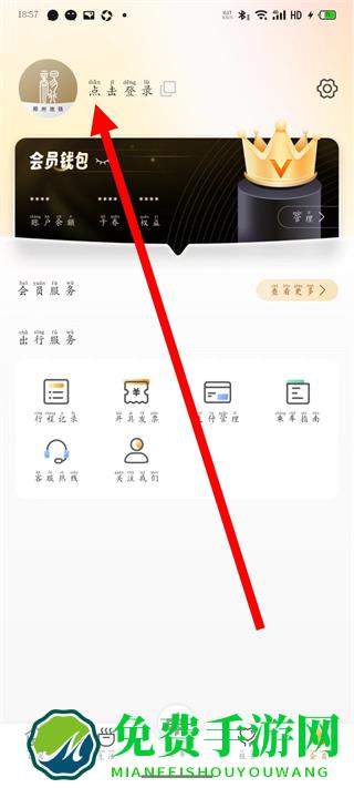 2、在会员页,点击点击登录,进入登录界面。