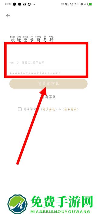 3、输入手机号,点击获取验证码。