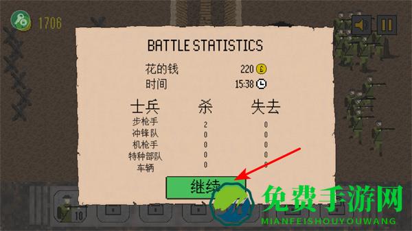 2、查看战斗统计,在战斗统计界面,查看数据,总结战斗情况,为后续策略调整提供依据,点击继续按钮推进游戏进程。