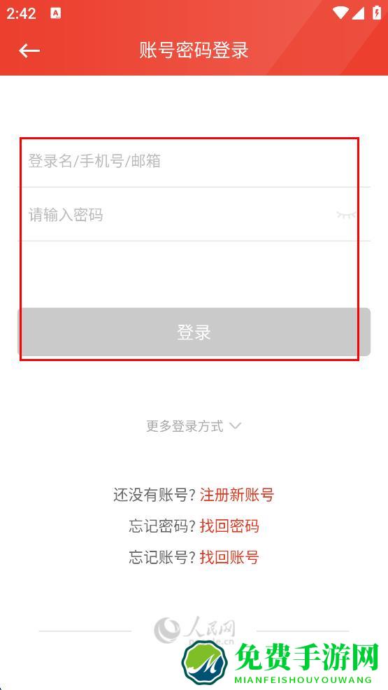 4、在账号密码登录页面输入登录名或手机号等账号信息,输入密码,点击登录按钮完成登录。