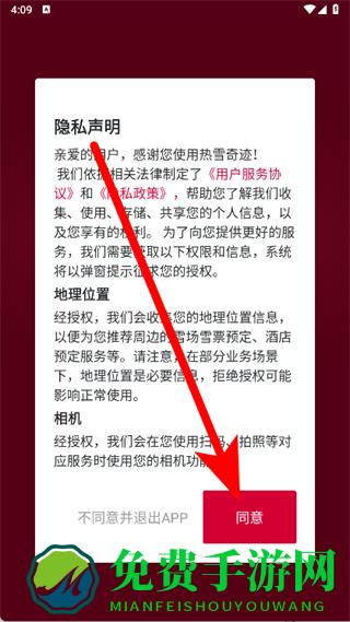 1、打开热雪奇迹,在弹出的隐私声明窗口中点击同意。