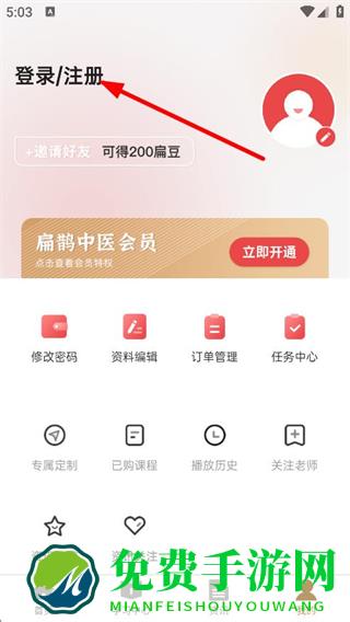2、在个人中心页面,点击登录/注册,进入登录页面。