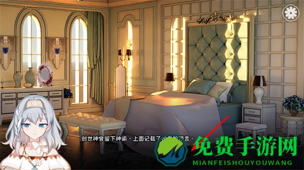 3、探索场景信息,在卧室场景中,点击剧情推进区域,阅读关于创世神留下神谕的剧情内容,获取世界观相关关键信息,推进进程。