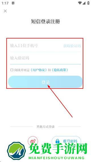 4、在注册页面,输入机号,获取并输入验证码,点击登录,完成登录操作。