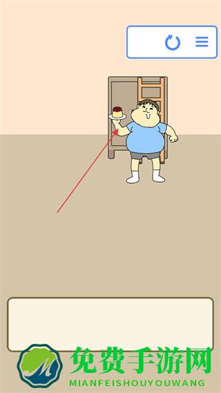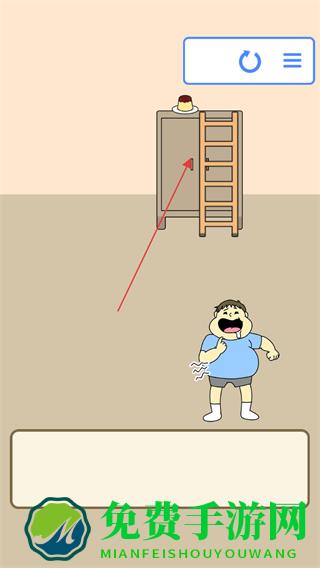 1、进入游戏关卡,观察场景中梯子、柜子及柜子上的点心位置,思考如何帮助人物拿到点心。