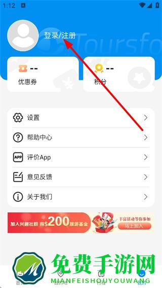 3、在个人中心页面,点击登录/注册,进入登录页面。