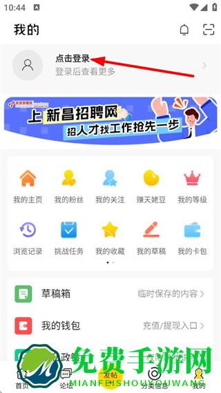 2、在个人页面,点击登录,进入账号密码登录页面。
