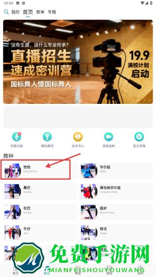 2、在音乐页面,点击恰恰舞种分类,查看恰恰舞相关音乐。