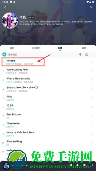 3、在恰恰舞音乐列表中,选择Havana音乐,进入播放页面。
