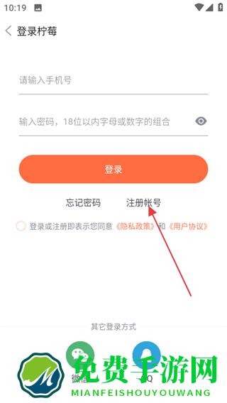 3、在登录页面,点击注册帐号,进入注册操作页面。