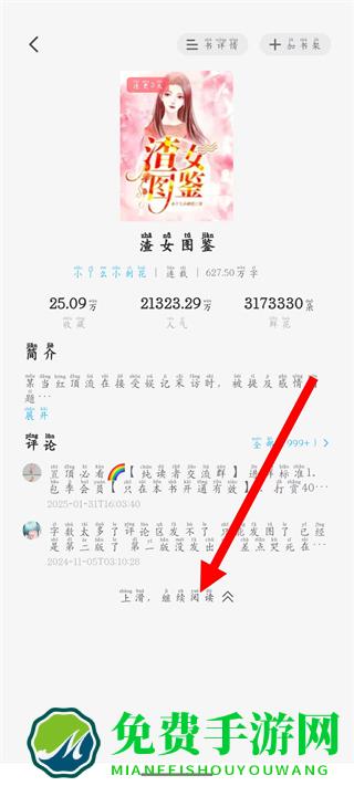 3、进入小说详情页,查看小说简介等信息,点击开始继续阅读按钮,进入小说阅读界面。