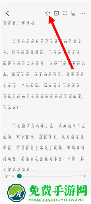 4、能沉浸式阅读小说内容,点击页面顶部的星形图标,将这部小说收藏起来,方便之后查找阅读。