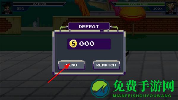 1、战斗失败后,点击MENU按键,可返回游戏主菜单,在能选择重新挑战、更换角色进行设置操作。