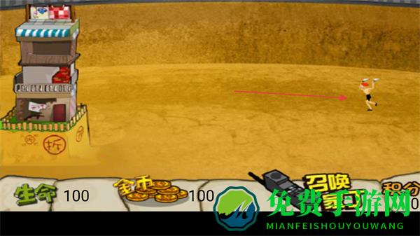 1、进入游戏留意生命值100和金币数100,看到敌人靠近准备应对。