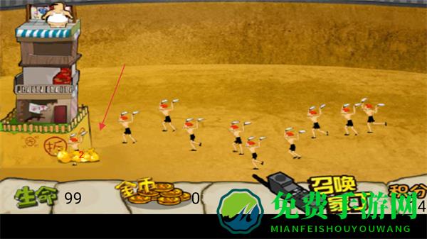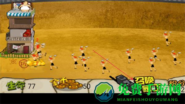 4、积累足够金币后点击召唤家丁,借助家丁抵御拆迁队进攻。