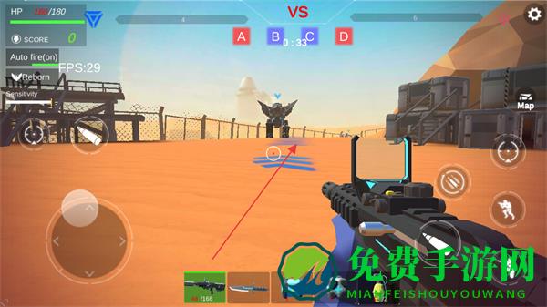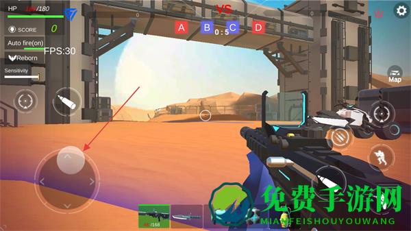 1、进入游戏,通过屏幕左下方虚拟摇杆控制角色移动,熟悉战场环境。