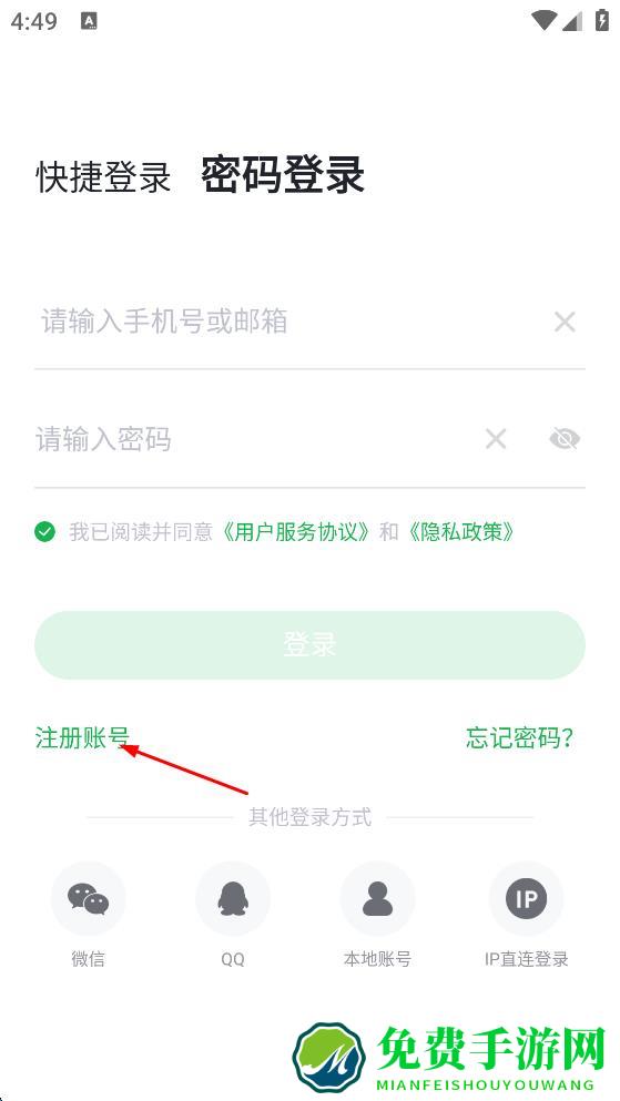 1、打开登录软件,在登录页面点击“密码登录”选项。