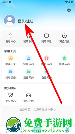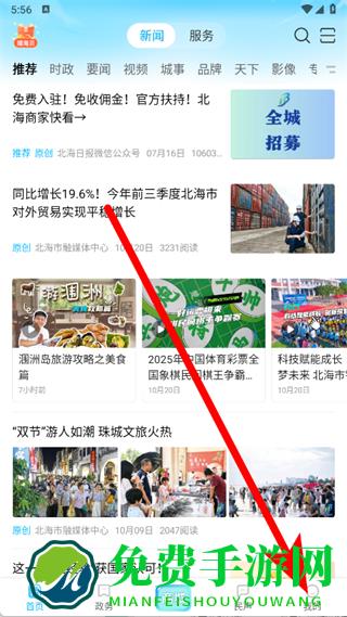 1、打开北海融媒,点击底部导航栏最右侧的我的。