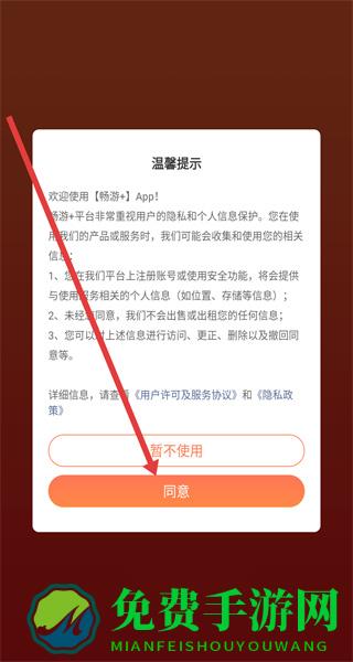 1、在打开畅游App后,可以通过点击弹窗中的同意按钮,进入使用。