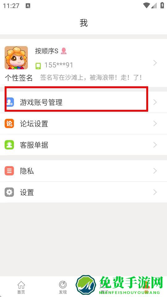 2、在个人界面中找到游戏账号管理选项,点击进入账号列表界面。