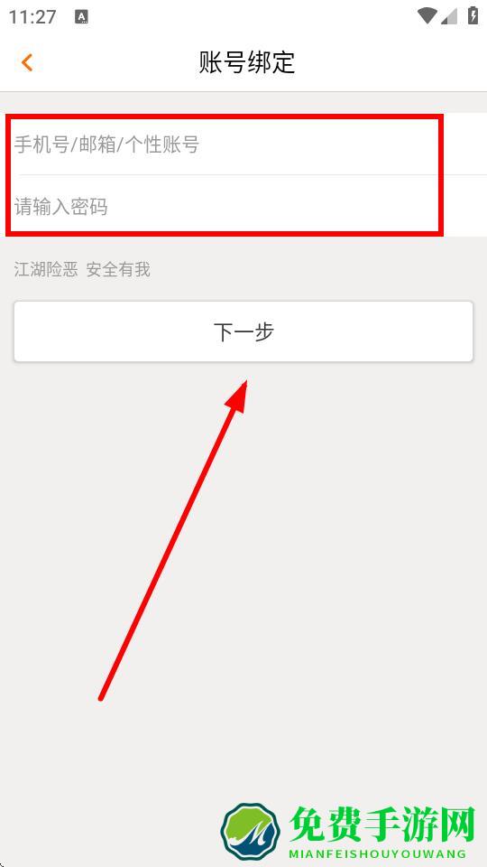 4、在账号绑定界面输入手机号/邮箱/个性账号及对应的密码,点击下一步,按后续提示完成新账号绑定操作。