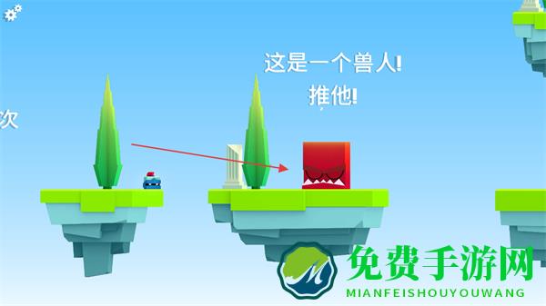 3、持续推动兽人,使其掉落平台,完成关卡目标。