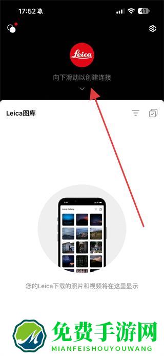 1、打开徕卡水印相机应用,向下滑动界面以创建连接。