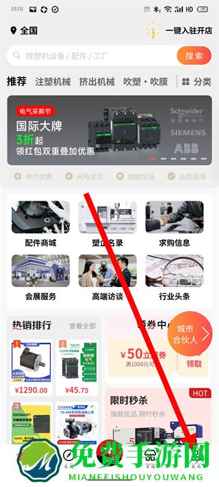 1、打开塑胶工业,点击页面底部的我的,进入个人页面。