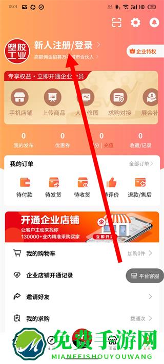 2、在个人页面中,点击新人注册登录区域,进入登录页面。