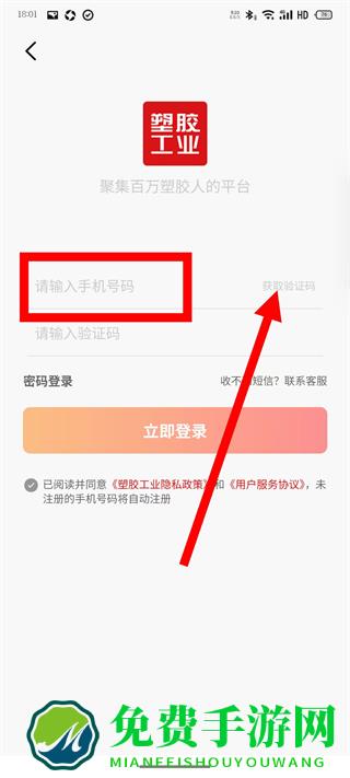 3、进入登录页面后,输入手机号码,点击获取验证码。