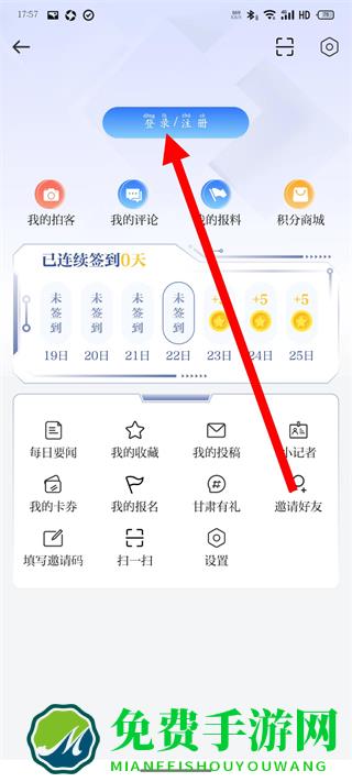 2、在个人页面,点击登录注册选项,进入登录页面。