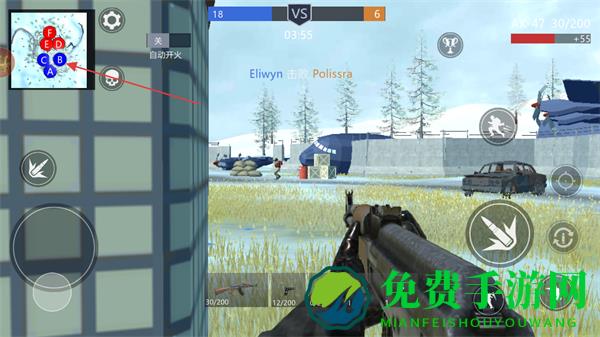 4、关注左上角小地图的A、B、C、D、E、F据点,占领据点提升己方分数,团队协作获胜。
