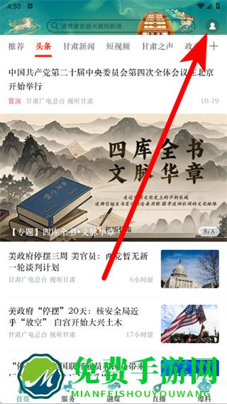 1、打开视听甘肃,点击右上角个人图标,进入个人页面。