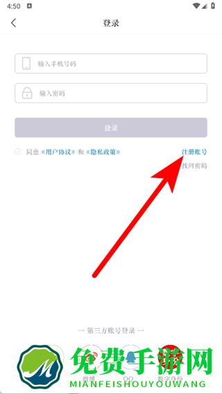 3、进入登录页面后,点击注册账号,进入注册页面。