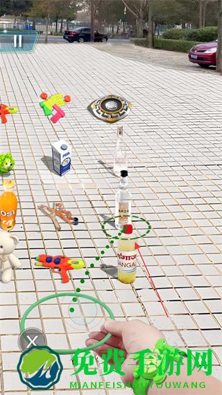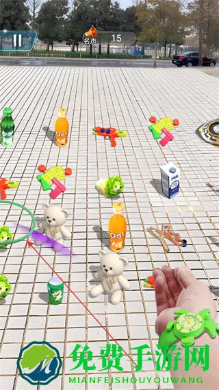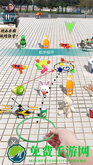 1、观察场景中各类物品的位置,瞄准目标如玩具、饮料等,调整投环的角度和力度。