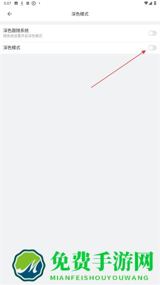 4、在深色模式的界面内,找到并开启右侧的开关按钮即可。