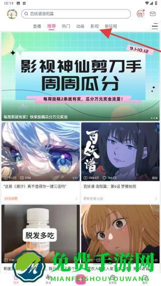 1、打开b站APP,进入到首页内,在分类栏找到影视的图标。