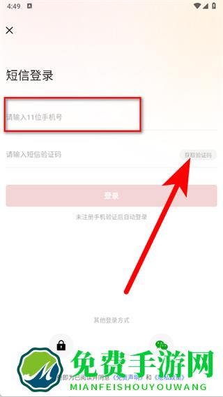 3、进入短信登录页面,输入手机号码,点击获取验证码。