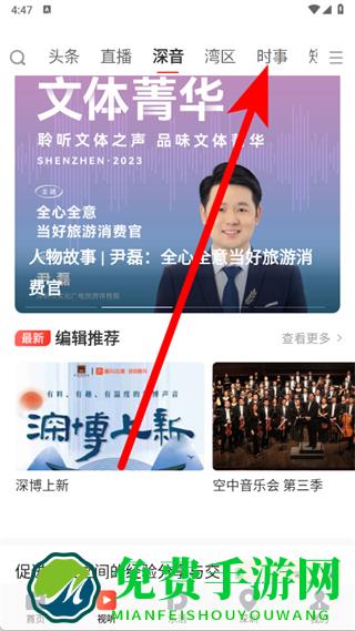 2、点击顶部导航栏的时事标签,进入时事新闻频道。