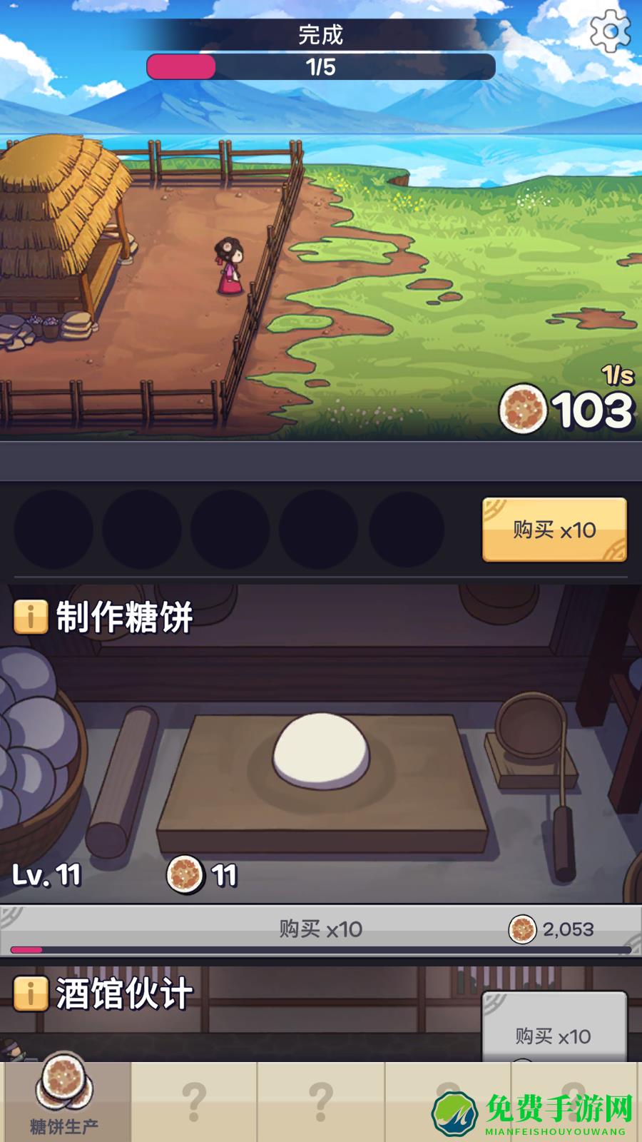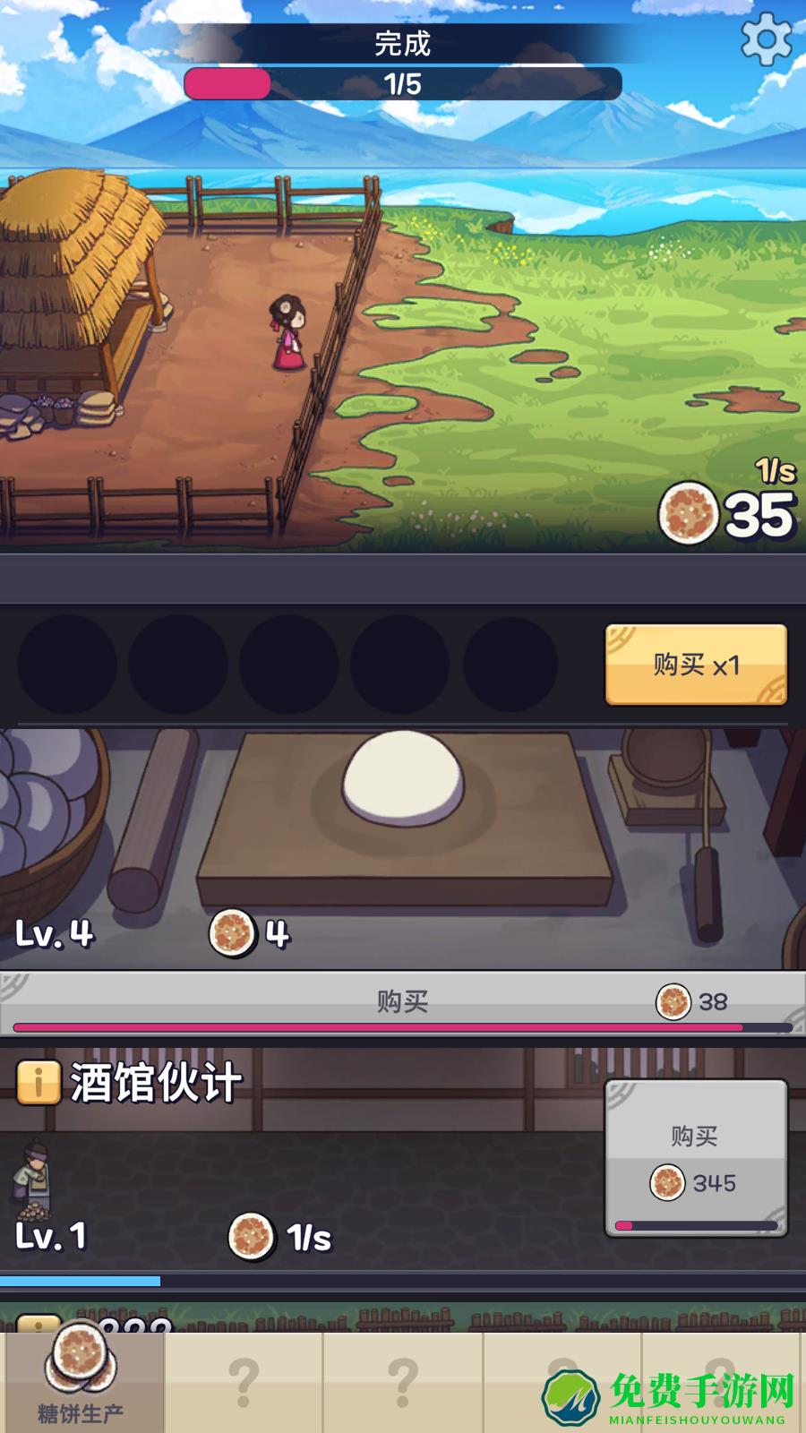 1、双轨生产系统:点击可获得基础糖饼产量,而购置的石磨烤炉等设备可实现自动化生产,两者产量互相叠加形成指数级增长曲线,合理分配资源。