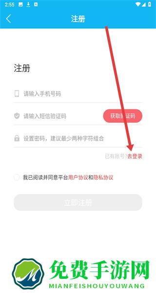 3、在进入到注册页面中,可以点击选择去登录按钮,进行登录。