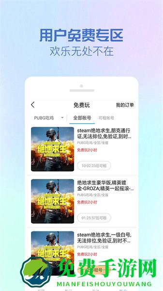 gg租号上号器app是GG游戏官方推出的一款游戏租号平台,提供游戏账号租赁、出租等服务,且不收取任何服务费,确保您的账号安全,而且整个加速都是特别的快,完全没有其他加速器乱收费的感觉,免费手游网诚意推荐!