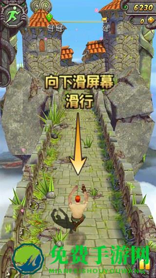 遇到一些障碍物我们不能提跳过去就只能钻过去,向下滑动屏幕即可。