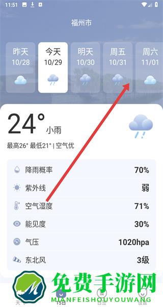 4、查看福州市10月31日的详细天气信息,包括温度、天气状况、降雨概率等。